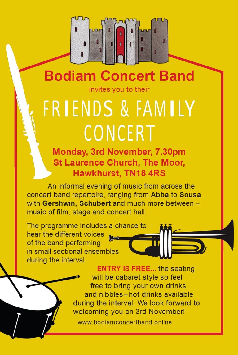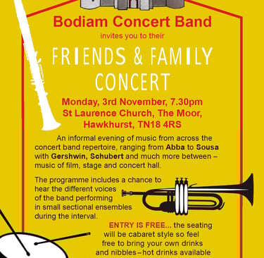 Next Concert is 7:30 pm Monday 3 November - an evening with Friends and Family at St. Laurence Church, Hawkhurst. Free Admittance