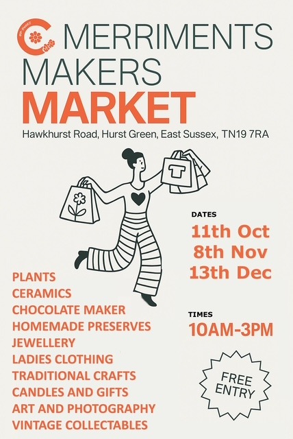 Then Christmas Music and Carols: 11 am - 2 pm Saturday 13 December at Merriments, Hawkhurst Road, Hurst Green, TN19 7RA